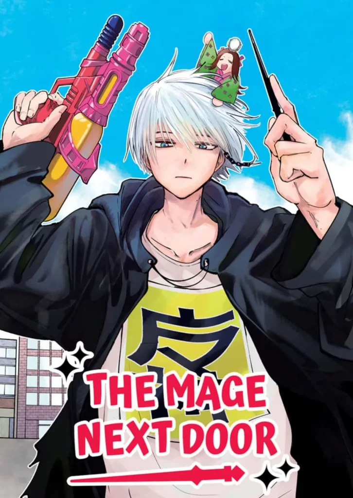 Por último, vamos para um mangá de comédia de ação. The Mage Next Door conta a história de Toya Osoegawa, um mago que gosta de usar sua magia para viver uma vida confortável. Mas, por conta da sua desmotivação, o Mago Divino o envia para derrotar magos malignos no Reino Humano.